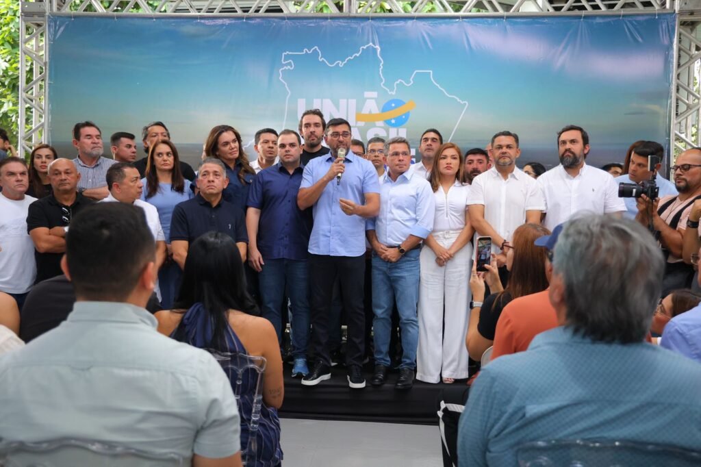 O governador e presidente estadual do União Brasil, Wilson Lima, anunciou nesta segunda-feira (2), na sede do partido em Adrianópolis,